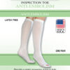 Blue Jay Brand * Inspection Toe * Graduated compression * Worn by non-ambulatory patients to reduce possibility of pulmonary embolism * Fiber content: Nylon (90%) Spandex (10%) * Patch heel * Laid in Spandex * Comfortable non-binding top welt * Two-way stretch * Color: white * HCPC CODE: N/A