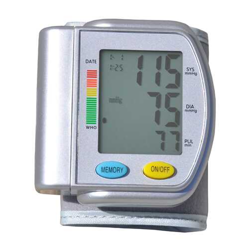 The Blue Jay Elite Healthcare Products PERFECT MEASURE WRIST BLOOD PRESSURE MONITOR is lightweight portable convenient accurate and simple to use * Users can easily check their blood pressure with this handy wrist blood pressure * Accurate results detected by oscillograph * One-touch function * Irregular Heartbeat Detection * 90 memory recall with date and time stamp * Automatically powers off to help extend battery life * LCD screen display * WHO (World Health Organization) BP classification indicator * Average of the 3 most recent measurements * Cuff fits wrists 6.1 – 9.8 in circum. * Runs on 2 ‘AAA’ batteries (not included) * 1 year warranty